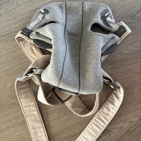 Äldre bärsele från babybjörn. Flera tecken på användning finns (se bilder)men fyller fortfarande funktion. Legat på vinden sen användning ca3år ej tvättad sen den är lagd undan.