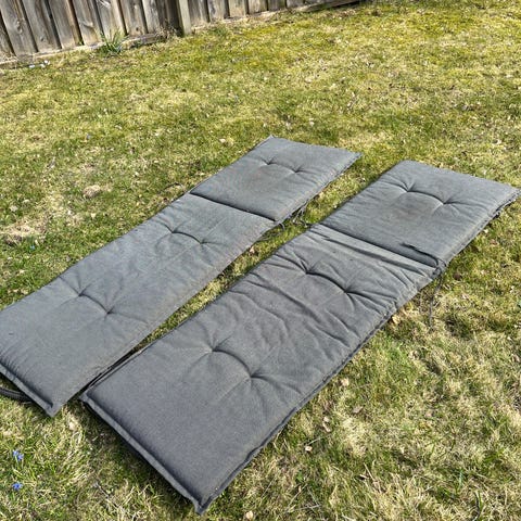 4 stycken Hillerstorp dynor till solstol och positionsstol i grått rutigt mönster.