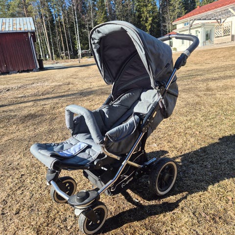 Emmaljunga Scooter 4S sittvagn. Svart med bruna detaljer. Har alltid förvarats inomhus så den är hel och mögelfri. Någon fläck kan finnas, men jag har inte tvättat den.