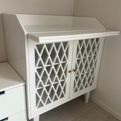 När skötdelen inte längre behövs, kan den enkelt lyftas av, och byrån förvandlas till en praktisk förvaringsmöbel med ett skåp och tre rymliga lådor.
