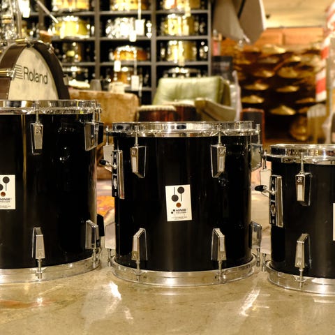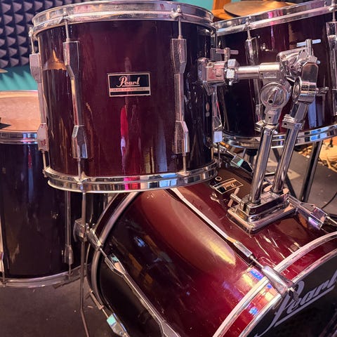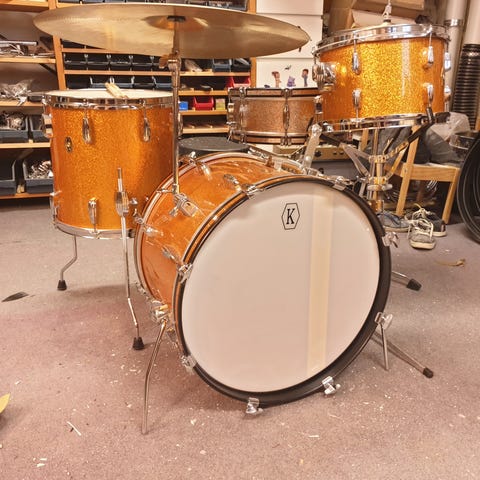 Två golvstativ och pukhållare på bastrumman. Inga casar.