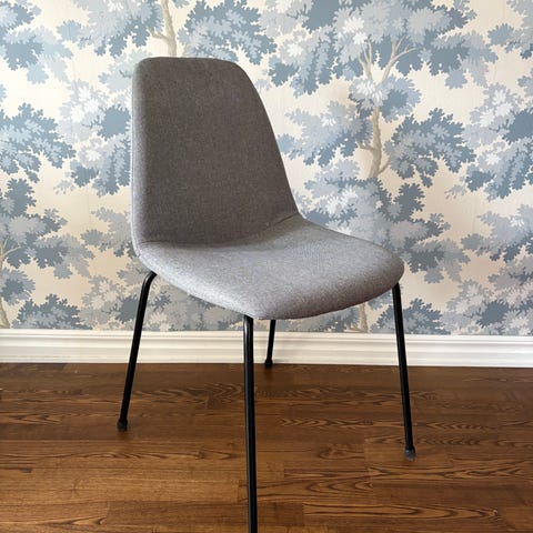 4 st gråa stolar från IKEA, KÄTILL. Sparsamt använda. Behövs skruvas åt skruvarna undertill. Små fläckar runt om på stolarna. Men kanske för nån som vill byta tyg på stolarna☺️ Hund finns i hemmet!