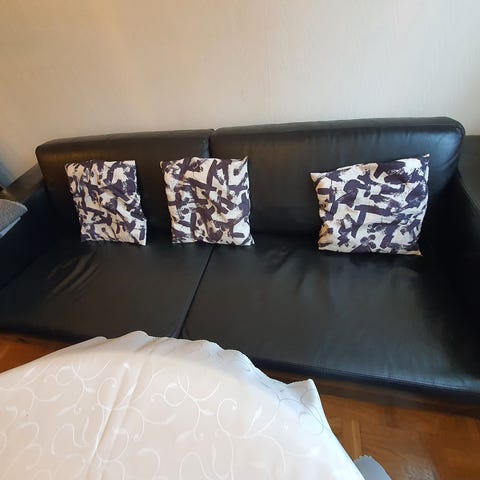 Säljer en stilren skinnsoffa från ILVA i äkta läder.