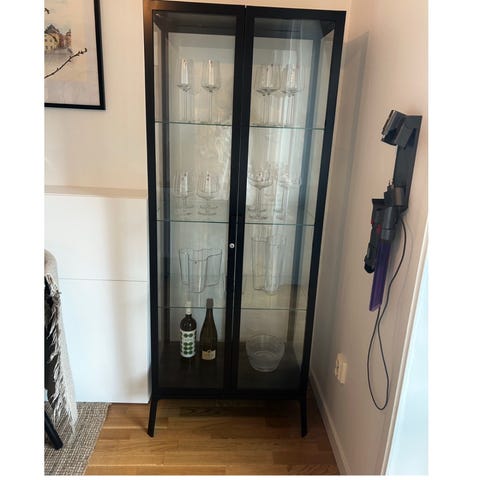 Säljer mitt vitrinskåp från IKEA i mycket fint skick, som nytt och utan skador. Perfekt för att visa glas, porslin eller dekoration.