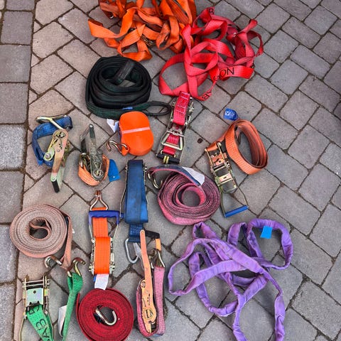 Säljer ett set med 5 st kvalitets-spännband från Forankra, 6 meter långa med LC 1000 daN (≈1000 kg).