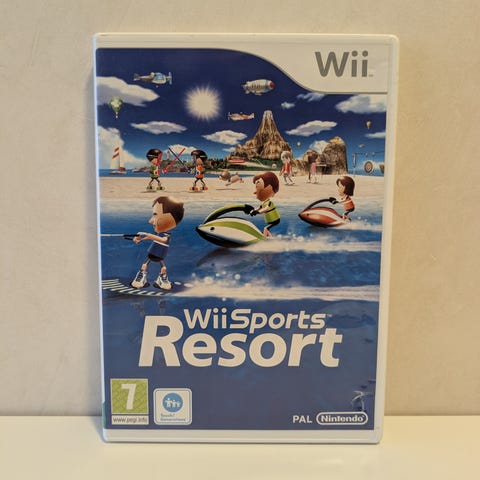 Nintendo Wii Sports Resort spel till Nintendo Wii. Fysiskt spel på skiva med omslag enligt bild. Spelet är märkt med PEGI 7 och är avsett för användning med Nintendo Wii-konsol. Innehåller olika sportminispel som spelas med Wii-fjärrkontroll och kompatibla tillbehör.