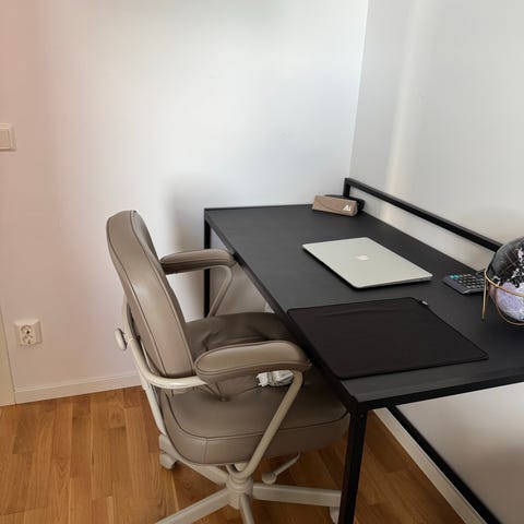 Kontorsstolen är använd men hålle gott skick och är fräsch.
