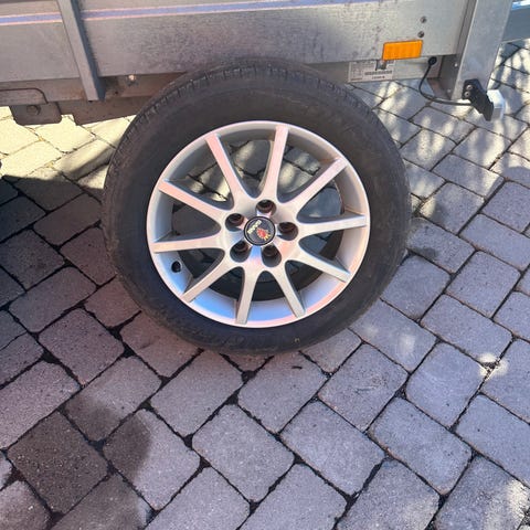 sabbfälgar som är fina,2 däck har mycket mönster kvar och 2 mer slitna men godkända skulle jag säga. Passar saab 93