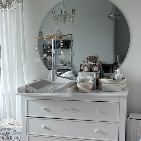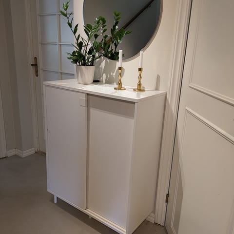 Robust skänk/byrå. 3 st lådor och två st skåp - ett stort med dubbeldörrar och ett smalare (en dörr).