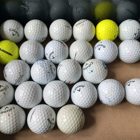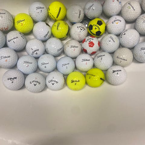 Callaway golfbollar i blandade färger. Majoriteten av bollarna är vita, med inslag av gula och rosa bollar. Passar för golfspel på bana eller träning på range. Bollarna är i bra skick med tanke på användning och det finns chromesoft bland dessa bollar. Vid intresse av andra bollar, skriv till mig eller kolla mina andra annonser!