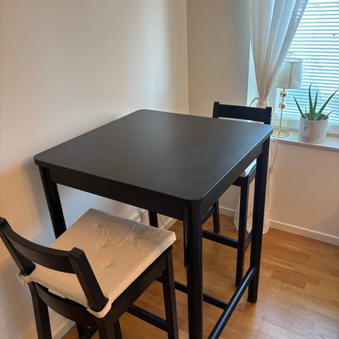 Säljer en stilren och stabil bargrupp från IKEA i mycket gott skick. Perfekt för köket, hemmakontoret eller som ett högt sidobord.