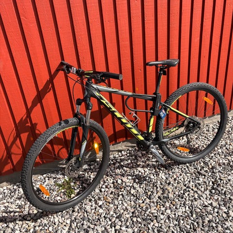 Scott mountainbike för unisex med ramstorlek M och 29" hjul. Cykeln har grovmönstrade däck anpassade för terrängkörning. Utrustad med framgaffel med dämpning och raka styre. Passar för vardagscykling och turer i skog och lättare terräng.