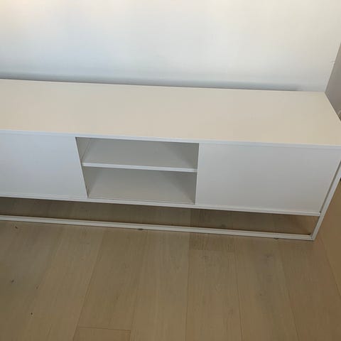 Fin TV/Media-bänk, vit med glasskiva - Bestå från IKEA. I bra sick!