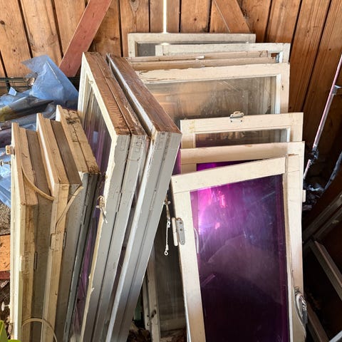 Trä fönster (enkelglas) säljes, suttit i en timmerstuga
