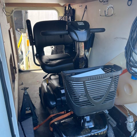Enkel och fungerande promenadskoter säljes pga flytt. Skotern har två hastighetslägen och en toppfart på cirka 12 km/h, vilket gör den lämplig för lugn och trygg körning. Batteriet klarar ca 40km på en laddning.