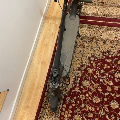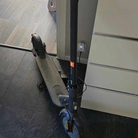Elsparkcykel i svart färg med digital display på styret. Utrustad med handbroms, ringklocka och gasreglage vid höger handtag. Framhjulet har reflexlist för ökad synlighet. Ståplattan har halkskyddande yta. Modellen är hopfällbar vid styrstammen för enklare förvaring och transport.