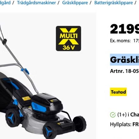Justerbar klipphöjd i tre lägen (25, 45, 65 mm) gör det enkelt att anpassa resultatet efter behov. Medföljande uppsamlare på 30 liter, alternativt bakutkast för enklare klippning utan tömning.