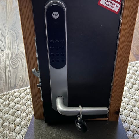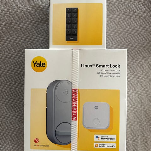 Låset monteras på insidan av din dörr och låses upp från din smartphone, automatisera stängning/öppning och skapa tillfällig åtkomst för gäster. Endast öppnad men aldrig monterad då jag hann flytta.