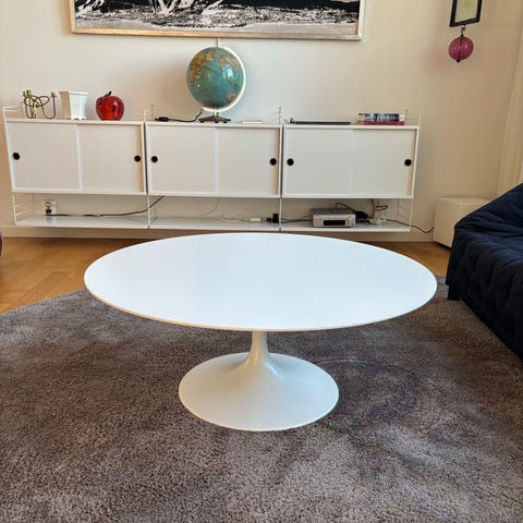 Ovalt soffbord i vitt som är i mycket bra skick utan några spår av användning. Inköpt på Stalands Möbler för 8 000 kr för något år sedan.