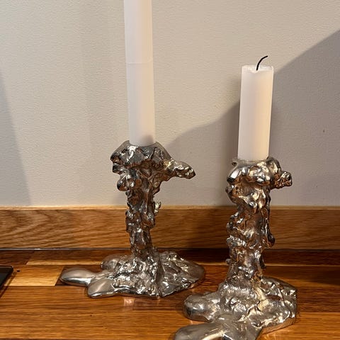 Ljusstakar silverfärgade.