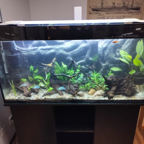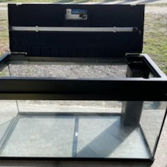 Litet akvarium med måtten Bredd 31cm, Djup 16cm, Höjd 21cm. Glaslock saknas, i övrigt OK.