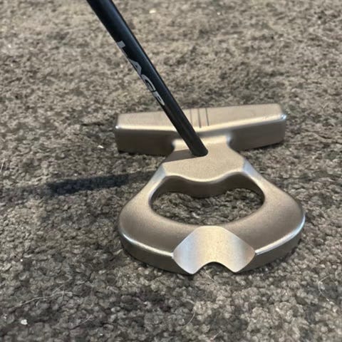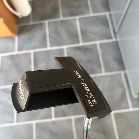 Cleveland Frontline Iso putter, Mallet-huvud med stor siktöppning och vit siktslinje för enklare linjering. Skaft 35 tums längd med Frontline-grepp. Passar för golfspelare som föredrar en stabil putter och tydlig sikthjälp på green.
