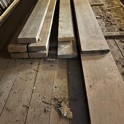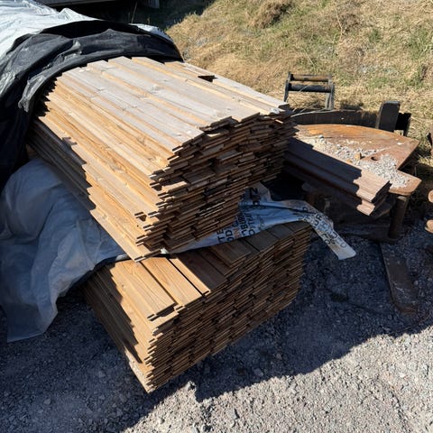 Obehandlat virke och plank i trä. Blandning av plank, brädor och reglar i olika dimensioner och längder. Virket är staplat utomhus under tak och består av grovsågade och hyvlade trästycken. Lämpligt för olika bygg- och snickeriprojekt där massivt trä önskas. Exakta mått och mängd kan kontrolleras vid behov. Virket är upptaget ur Klarälven sågat och lufttorkat fura med mycket fina färger I träet . Okantat 75mm 450kr kvmeter. 63mm 375kr 2m. 55mm 300kr 2m. 30mm 175kr 2m.