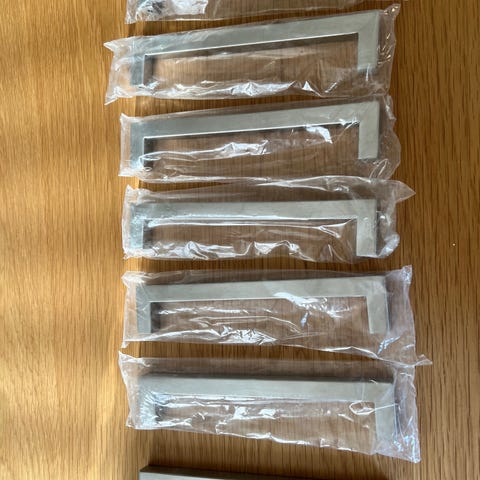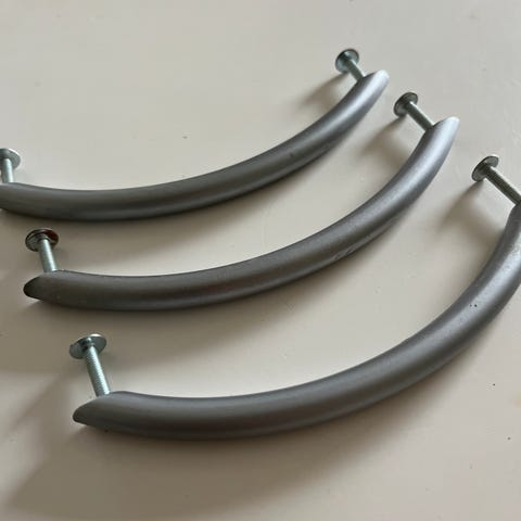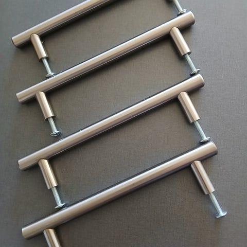 Stilrena handtag för köksluckor eller lådor i bok och krom. Handtagen har cylindriska fästen i metall och ett grepp i trä. Passar på skåp, lådor eller möbler. Skruvhålens avstånd, det så kallade cc måttet är 10 cm.