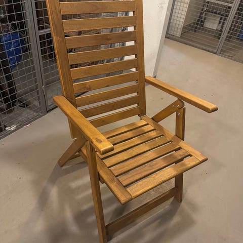 6 stycken trädgårdsstolar i trä. Stolarna har ribbad sits och ryggstöd samt armstöd för ökad komfort. Passar för användning utomhus på altan, balkong eller i trädgård. Stolarna kan fällas ihop för enklare förvaring när den inte används.