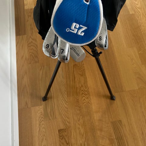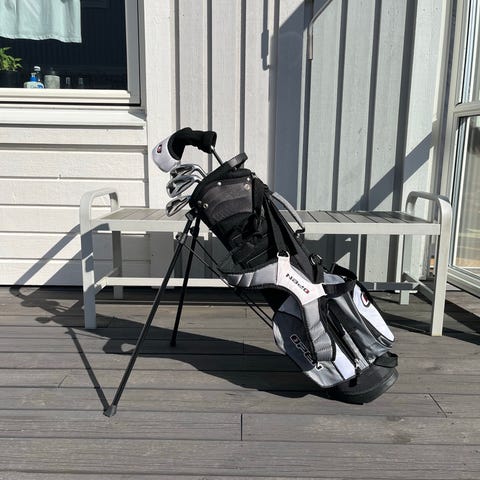Den omåttligt populära bärbagen för juniorer i ålder 12-14 enligt tillverkare, men jag skulle säga ålder 10-13-ish. Väskan har bärremmar för axeln och inbyggt stativ med två ben för att kunna stå upp på marken. Flera fack och fickor för klubbor, bollar och tillbehör. Passar för golfspelare som vill bära sin utrustning på banan.