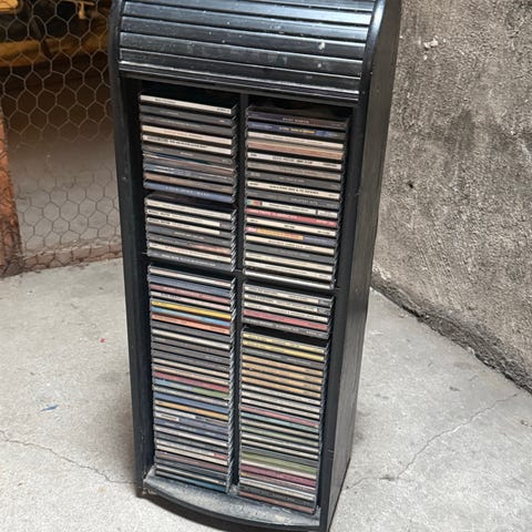 Cd-ställ i golvmodell i svart metall. Vertikal modell med ett trettiotal fack för förvaring av cd-skivor. Fristående konstruktion med stabil fot, lämplig att placera på golv i vardagsrum, kontor eller liknande utrymme för organiserad förvaring av cd-skivor.