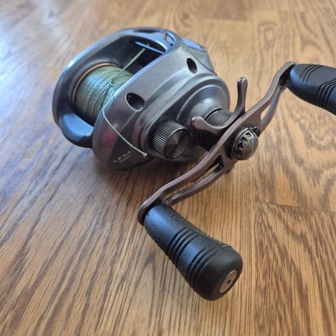 Rullen är använd ett par gånger på ett annat spö, finns någon liten repa. Spöt är använt en gång, nyskick.