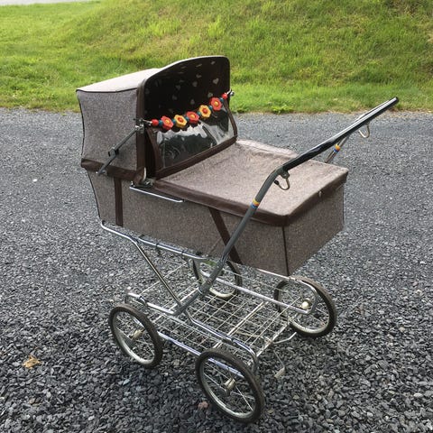 Röd dockvagn i mycket gott använt skick. Madrass. Lätt att ta av och på överredet.