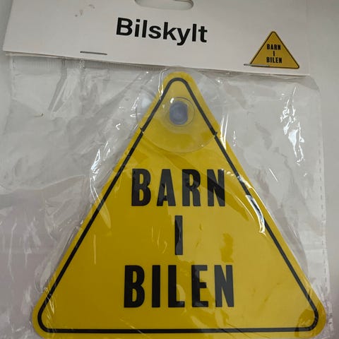 Plåtskylt med humoristiskt varningsmeddelande tryckt på framsidan. Avsedd för uppsättning exempelvis vid infart, garage, gårdsplan eller liknande miljöer där man vill ha en skämtsam skylt som uppmärksammar förbipasserande.