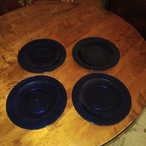 Säljer 4 st tallrikar med blå blom motiv
