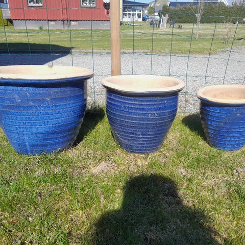 Två stora glaserade krukor 38 cm i diameter och 30 cm höga i fint använt skick lämpliga för utomhusbruk. 380:- st 700:- för båda tilsammans-