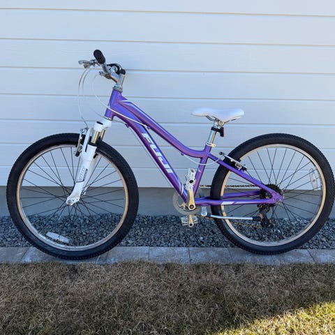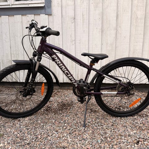 Specialized barncykel med 24" hjul i lila färg. Passar både för asfalt och enklare grus- eller skogsvägar. Använt skick så finns en del skavanker.