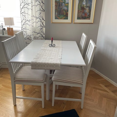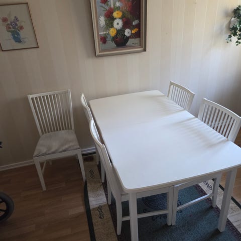 Fint och fräscht köksbord med utdragsskivor stabilt med kraftiga ben