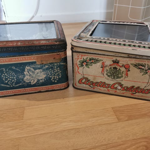 Tänkte sälja av min samling med äldre plåtburkar. Mestadels är Kakaoburkar. Flera väldigt ovanliga.