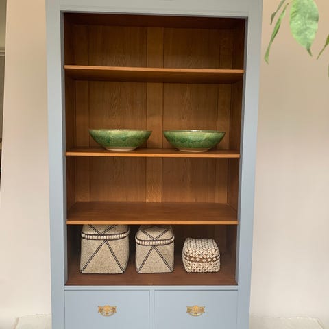 Varsamt renoverad och målad i helmatt ljus blågrå nyans. Silkesmatt underbart lyster i ljuset.
