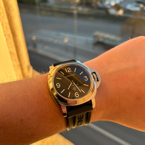 Komplett service hos panarai/nymansur STHLM oktober 2025 med två års garanti. Klockan är i ny skick då man också bytte kolfibercaset och inte använts sen den kommit tillbaka från service.