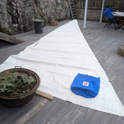 Mängder av båtgrejer, se bilder. Finns också trämast,ca 10 m, bom, div rostfria stag och vant. Overallen vill jag ha 500kr för. I övrigt pris enl ök.