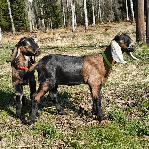 Säljes till liv och endast till dig som har SE-nummer. Gruppen kan delas men säljes då i form av mor-son, mor-dotter+get. En väldigt social grupp som gärna följer med på skogspromenader och älskar gos!