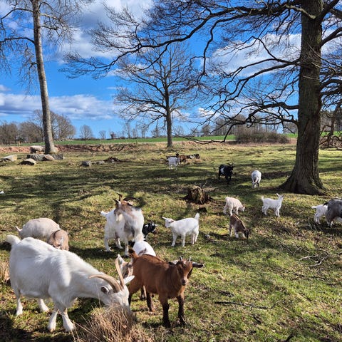 Det är Mor-son, mor-dotter och en jämnårig get. Tre av getterna är födda 2020 och en 2023, bocken är kastrerad och är född 2022.