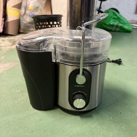 Electrolux juicepress i rostfritt stål med svarta detaljer. Utrustad med pip för direkt upphällning av juice och separat behållare för uppsamling av juice. Passar för att pressa frukt och grönsaker i hemmet. Enheten har kompakt bordsmodell som kan placeras på köksbänk.
