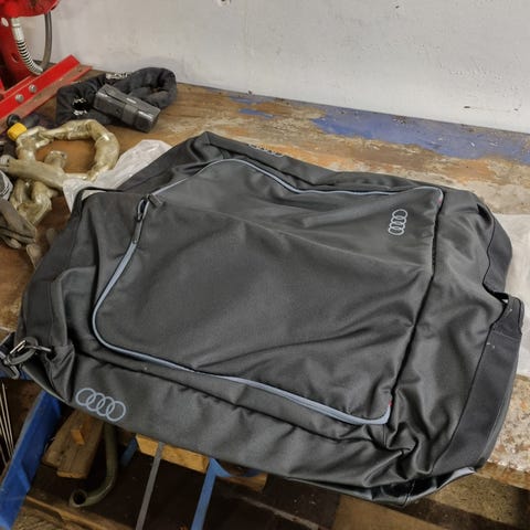 Audi bagagerumsskydd av rullgardinstyp med artikelnummer 8K9 863 553 B. Tillverkat i PES/PVC-material med stomme i metall. Färg mörk, anpassad för montering i bagageutrymmet för att dölja last och ge ett mer avskärmat bagageutrymme. Passar utvalda Audi-modeller som använder denna originaldel med motsvarande artikelnummer. Finns på väddö.