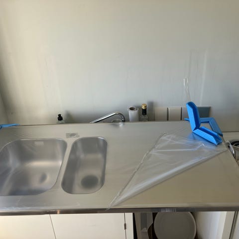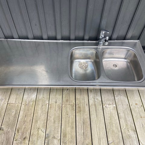 Rostfri diskbänk med en ho och arbetsyta. Diskbänken står på benstativ och är utrustad med blandare. Extra lös ho med avlopp medföljer enligt bild. Passar exempelvis i grovkök, garage eller verkstad där en enkel vatten- och diskplats behövs.