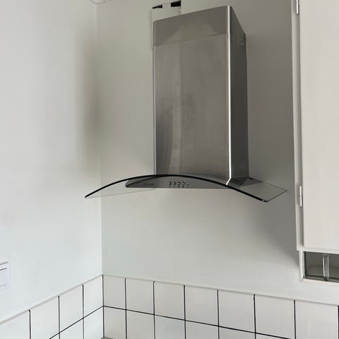 Rostfri väggmonterad köksfläkt. Rak, fyrkantig kåpa och skorsten i metall. Passar över spis eller häll i standardbredd. Utformad för montering mot vägg med anslutning uppåt. Kan användas som kolfilterfläkt eller kopplas till fläktkanal.