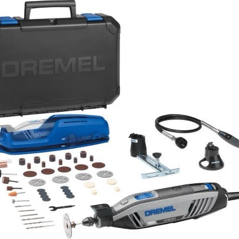 Dremel multiverktyg med omfattande tillbehörssats och förvaringslåda. Överhandsfräs satsen och frässtålen plus massa extra tillbehör.