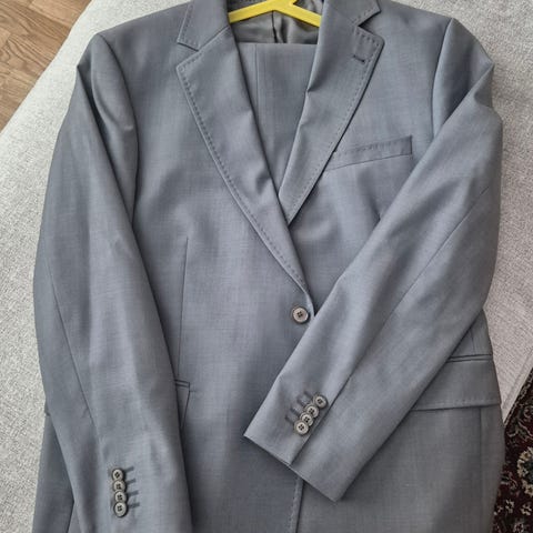 Mörkt blå kostym, med väst köpt på MQ. Använd två gånger